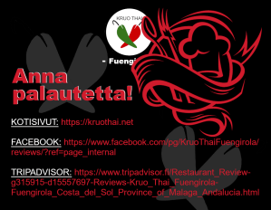 Toteutus yhteistyössä thairavintola Kruo Thain ja Tomi Vellamon kanssa Aurinkorannikon Fuengirolassa.